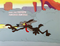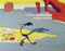 Wile E. Coyote (Famishius-Famishius) espera pegar o Papa-Léguas (Burnius-Roadibus) usando um martelo, uma panela, bananas de dinamite, um balão com um arpão e um piano em um precipício.
